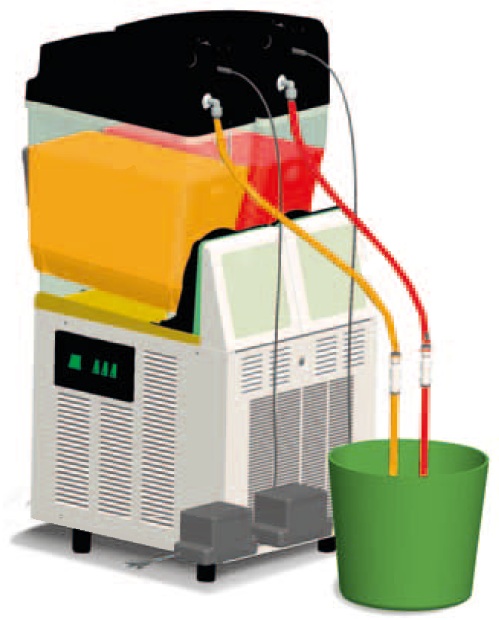 - udržuje konstantní hladinu pro správnou konzistenci ledové tříště za pomocí elektronické sondy. - umožňuje připouštět směs přimo z nádoby (např. kanystr), navíc je vybaven elektronickým zabezpečovacím zařízením, který varuje akustickým a i vizuálním signálem v případě, že dojde směs.