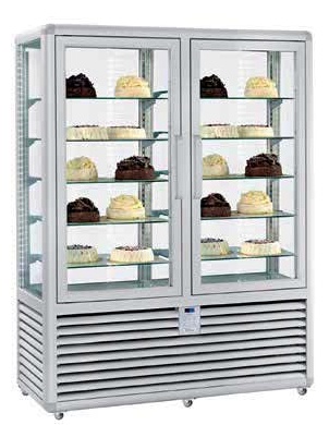 Dvojitá panoramatická chladící celokovová vitrína CPS 900 R/R, model se dvěma agregáty, dvěma ovládacími termostaty. Nemají společný chladící prostor a lze nastavit tedy různé teploty pro jednu i druhou stranu.